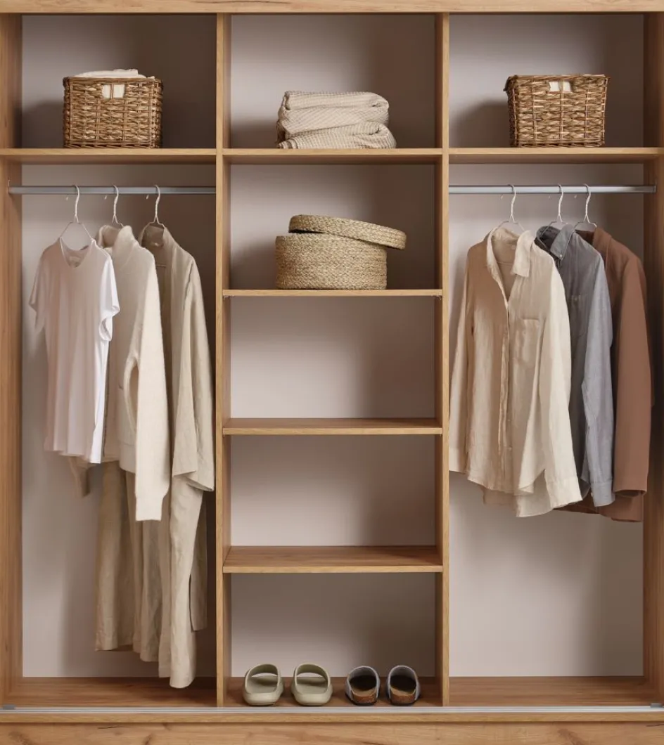 | Inclus | 1 miroir, 2 tringles à vêtements 6 étagères, 3 portes coulissantes |