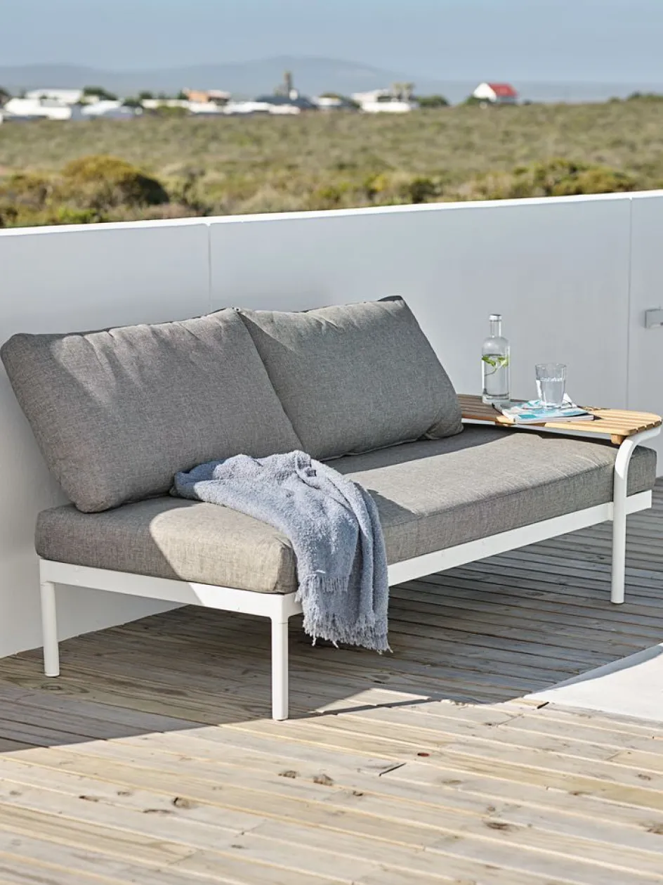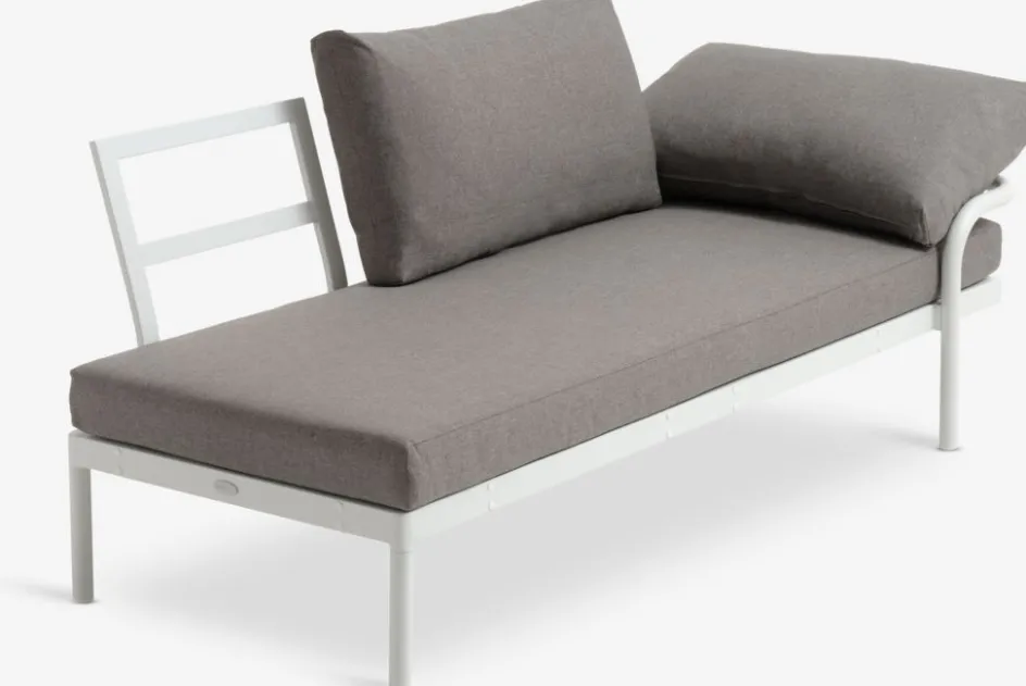 Banquette en aluminium et bois FSC® laqué. Incl. coussins haut de gamme avec housse résistante à structure tissée. Les dossiers mobiles vous permettent de placer les coussins de dos comme vous le souhaitez. l181 x H71 x P87 cm