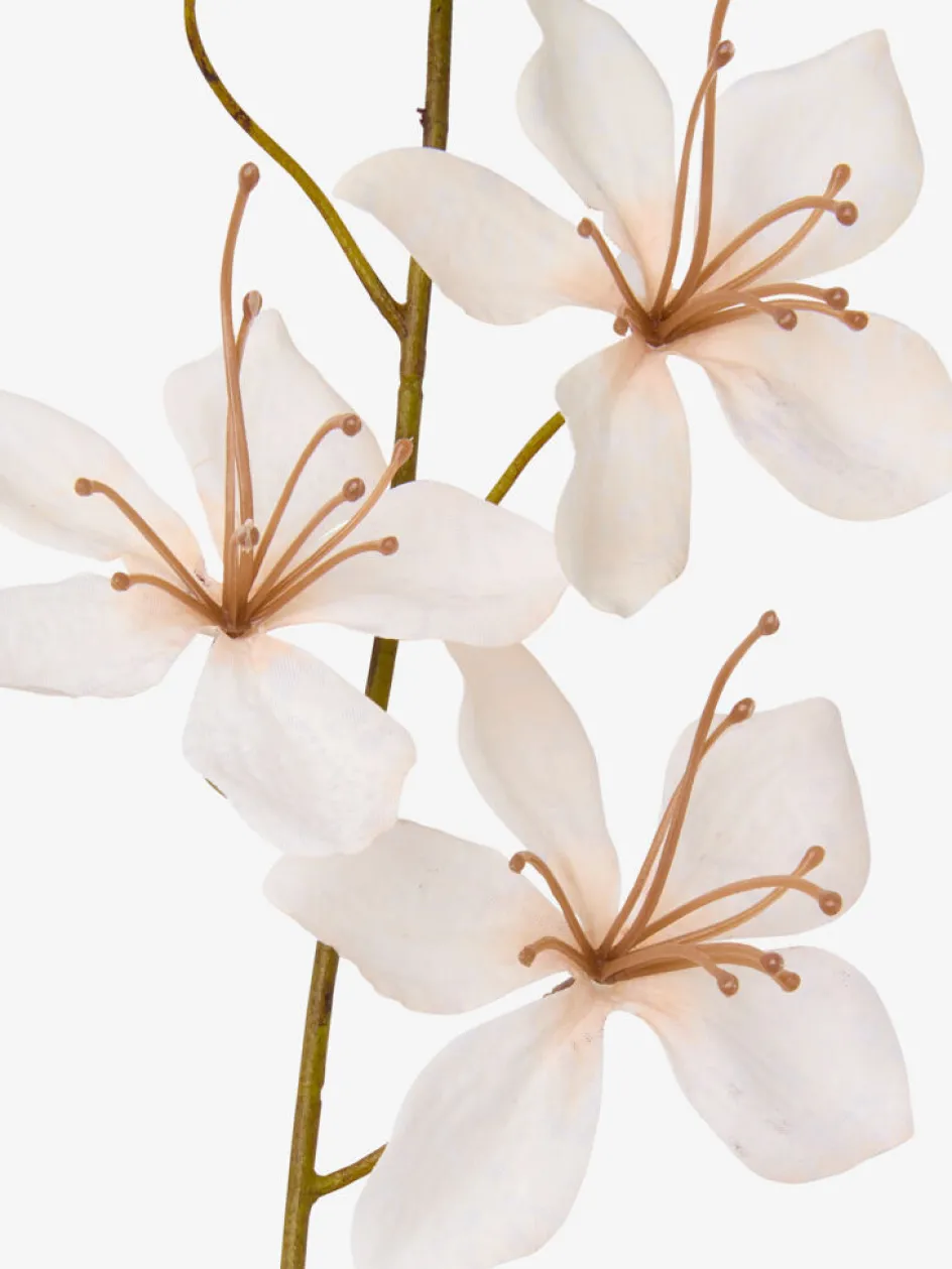 Fleur artificielle présentant de délicates fleurs blanches sur une tige. Cette grande fleur réaliste constitue une touche décorative pour votre maison, qui ne demande que peu d’entretien. Elle peut être présentée seule dans un vase ou intégrée dans un plus grand arrangement floral. l6 x H80 cm