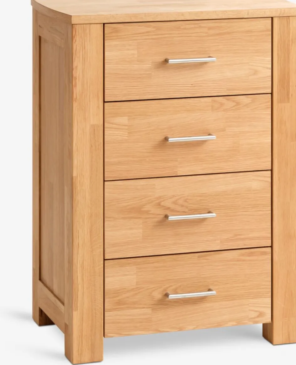 Chêne massif et placage chêne. Tiroirs soft-close. l73 x H98 x P50 cm