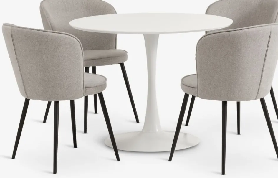 RINGSTED + RISSKOVRINGSTED Ø100 table blanc + 4 RISSKOV chaise gris clair-JYSK New