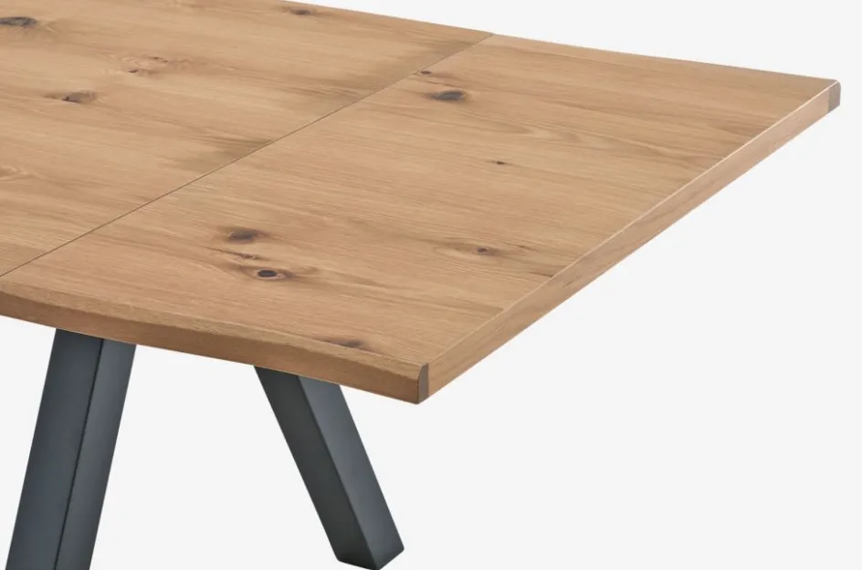 Table de salle à manger avec possibilité d’ajouter des rallonges. Le plateau est en placage décoratif chêne et MDF et les pieds en bois massif noir. Le bois est laqué pour une plus grande durabilité. En ajoutant des rallonges, vous pouvez facilement allonger la table à 255 ou 300 cm pour accueillir plus d’invités. Les rallonges peuvent être achetées séparément. l100 x L210 x H75 cm