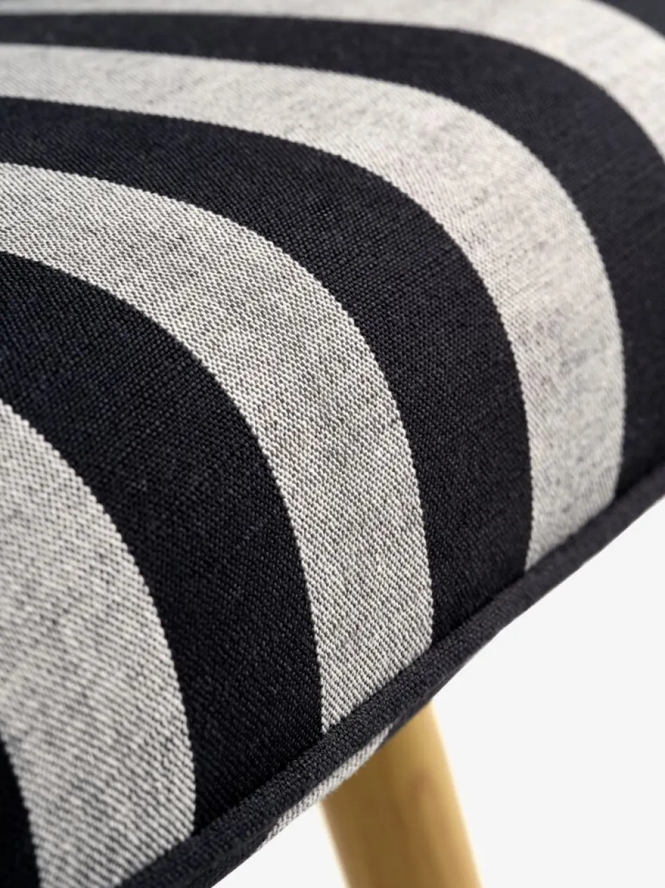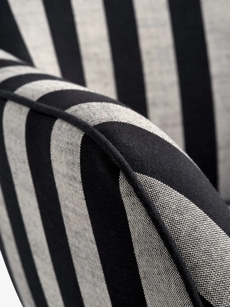 En contreplaqué, acier. Garnissage : mousse polyéther. Revêtement : polyester. Pieds : acier. l80 x H98 x P72 cm