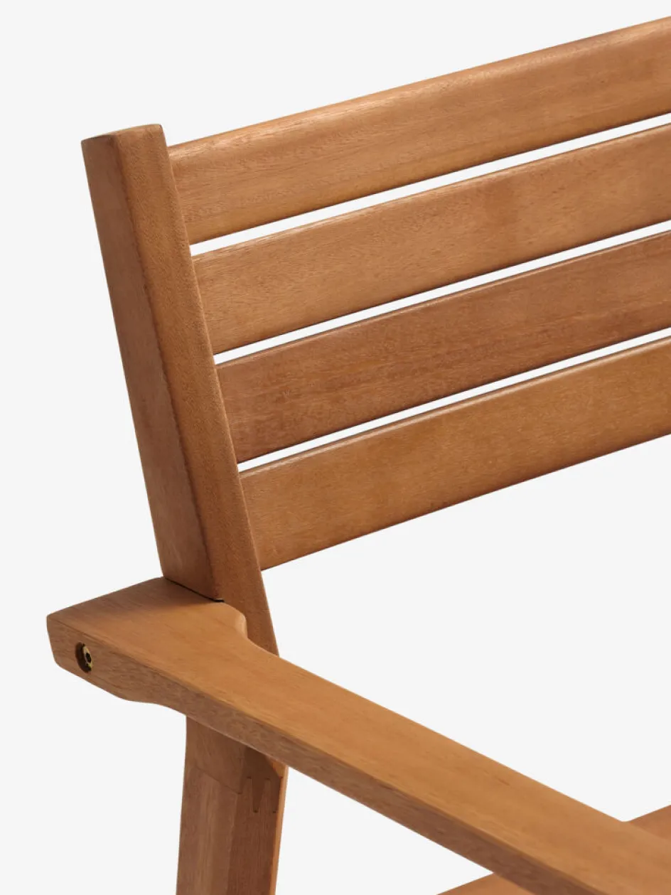 Ensemble meubles de jardin 4 places. Table: Aluminium et bois dur FSC® huilé. l91 x L91 x H75 cm. Chaise: Bois dur FSC® huilé. Empilable.