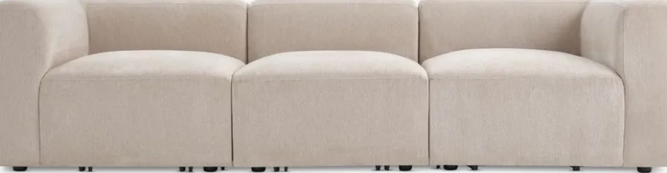 Canapé modulable comprenant 3 modules pouvant être assemblés en fonction de votre espace : 1 module central (l92 x H64 x P92 cm) et 2 modules d’angle (l92 x H64 x P92 cm). En contreplaqué. Garnissage : mousse polyéther, assise en ressorts ensachés. Revêtement : polyester. Pieds : polypropylène.