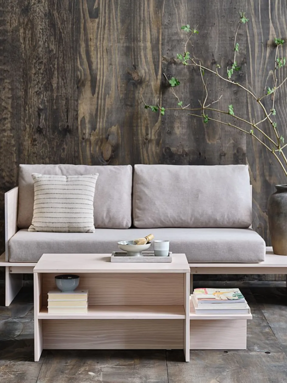 SOLLERUPTable basse SOLLERUP 50×110 a/tablettes pin massif-JYSK Discount