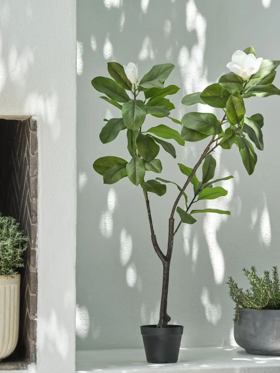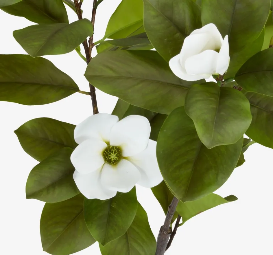 Plante artificielle d’extérieur qui ressemble à un magnifique magnolia avec des fleurs blanches. Son apparence réaliste garantit un charme durable sans besoin d’entretien. Ø45 x H120 cm