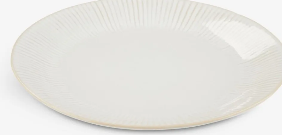 Assiette en faïence blanche au design cannelé classique. Convient à la fois pour les repas quotidiens et les occasions spéciales grâce à son apparence simple mais élégante. Résistant au lave-vaisselle. Ø21 cm