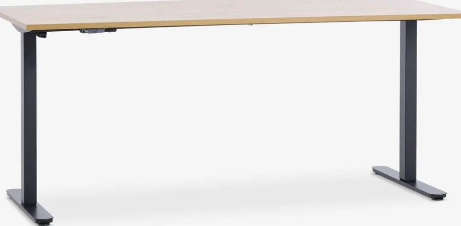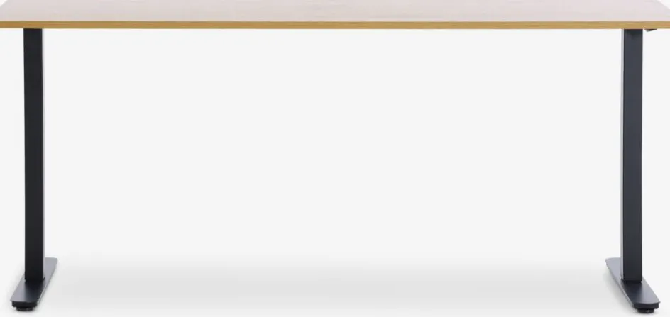 Le bureau à hauteur réglable se compose d’un cadre en acier robuste et d’un plateau en placage déco durable. Le plateau a un aspect chêne pour un look naturel qui convient à la plupart des espaces de bureau.