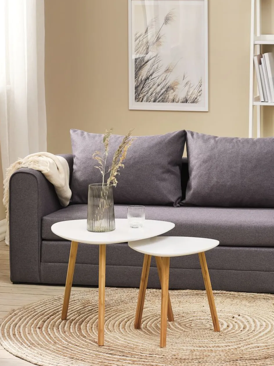 Plateau : MDF, acier. Pieds : bambou. l40 x L40 x H40 cm
