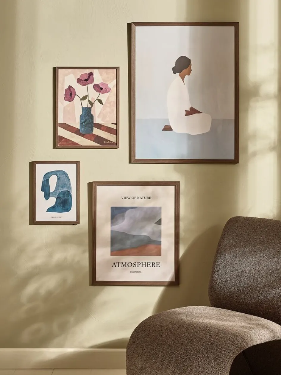 Cadre photo 21×30 cm en placage de bois foncé avec une face avant en plastique léger. Convient pour des posters et photos de format A4. l21 x H30 cm
