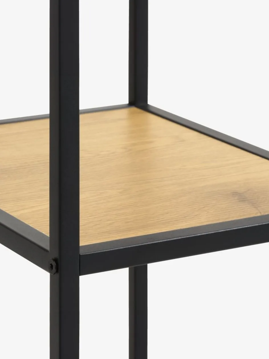Cadre : acier. Étagères : MDF mélaminé, plastique ABS. 4 étagères, 1 rail. l90 x H178 x P40 cm