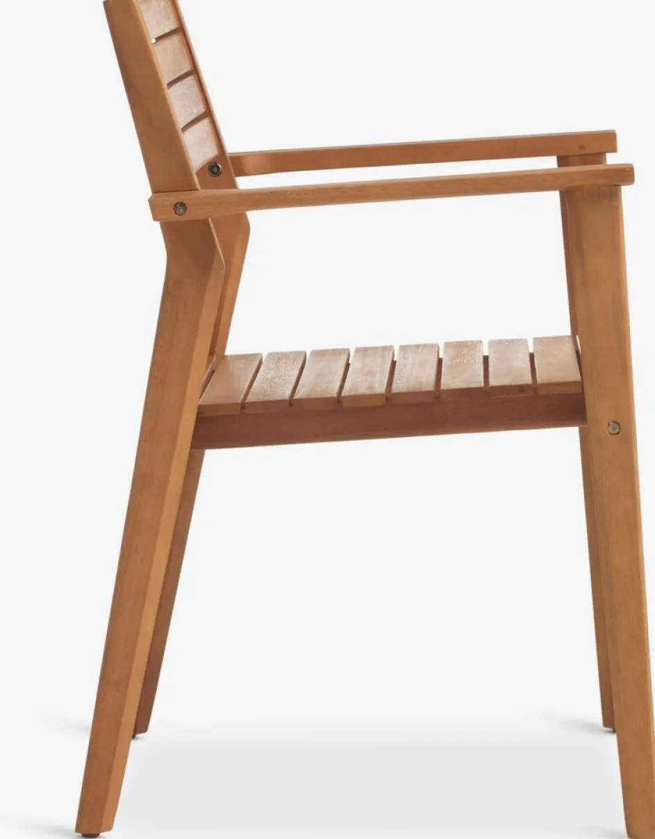 Ensemble de meubles de jardin 4 personnes. Table: Bois dur FSC® huilé. l95 x L223 x H75 cm. Chaise : Bois dur FSC® huilé. Empilable.