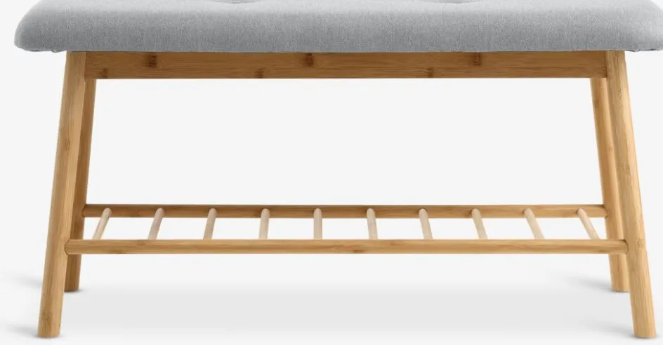 Structure : MDF. Garnissage : mousse polyuréthane (18 kg/m³). Revêtement : 100% polyester. Pieds : bambou. Vernis. l90 x H45 x P34 cm