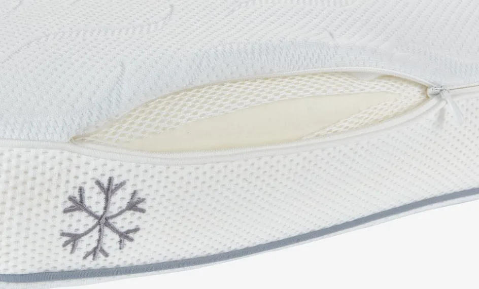 Un côté de l’oreiller est recouvert d’une fine couche de gel rafraîchissant et de tissu, vous permettant ainsi de choisir entre un côté rafraîchissant et un côté classique. Le gel absorbe la chaleur de votre corps et la dissipe, vous procurant une sensation de fraîcheur instantanée. De plus, le tissu contient des fibres de polyéthylène, qui sont naturellement fraîches au toucher.