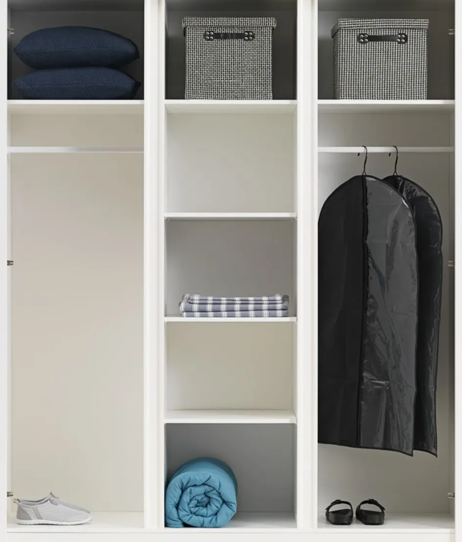 | Inclus | 1 miroir, 2 tringles à vêtements 6 étagères, 3 portes |