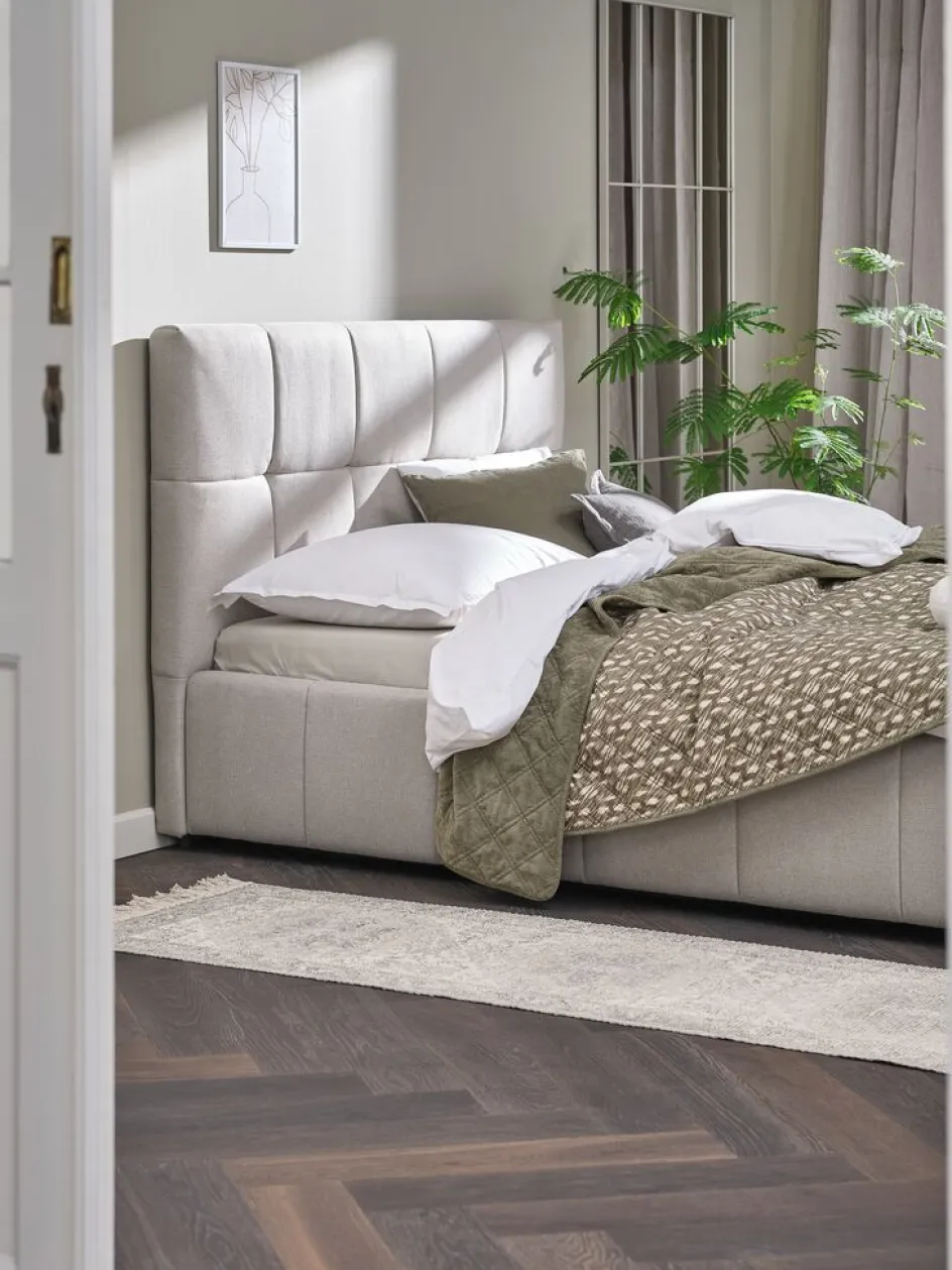 Tissu. Avec espace de rangement et sommier à levage hydraulique. Pour matelas à ressorts et en mousse de 140×190 cm. Incl. sommier à lattes. Excl. matelas. l160 x L207 x H115 cm