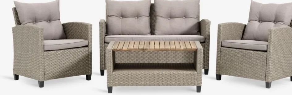 - Ensemble lounge 4 personnes: canapé lounge 2 places, 2 fauteuils lounge et 1 table