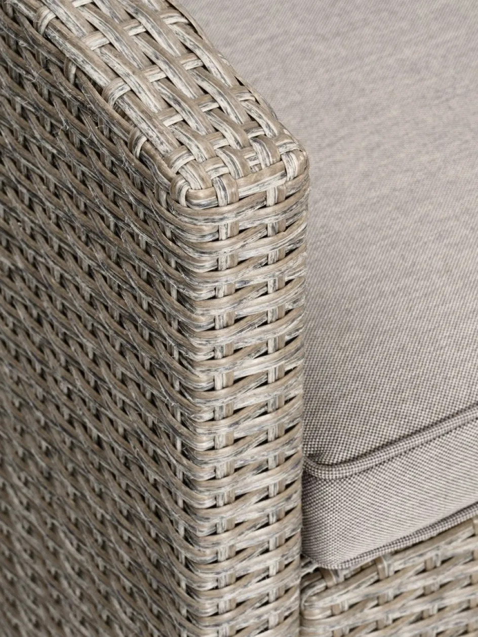 Les coussins d’assise et de dossier haut de gamme inclus vous permettent de vous asseoir et de vous détendre dans un confort optimal. Les coussins sont recouverts d’une housse tissée durable, qui les rend résistants à l’usure. Rangez les coussins à l’intérieur lorsqu’ils ne sont pas utilisés afin de les protéger des intempéries et de prolonger leur durée de vie.