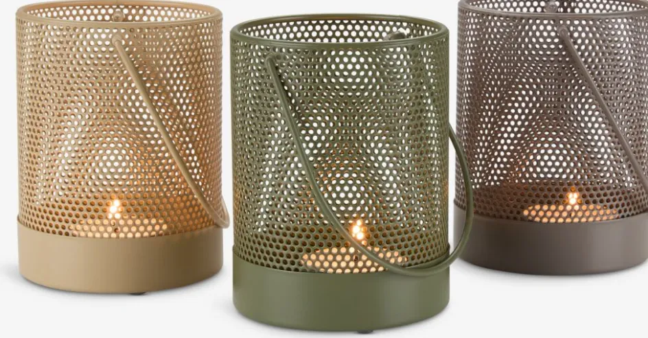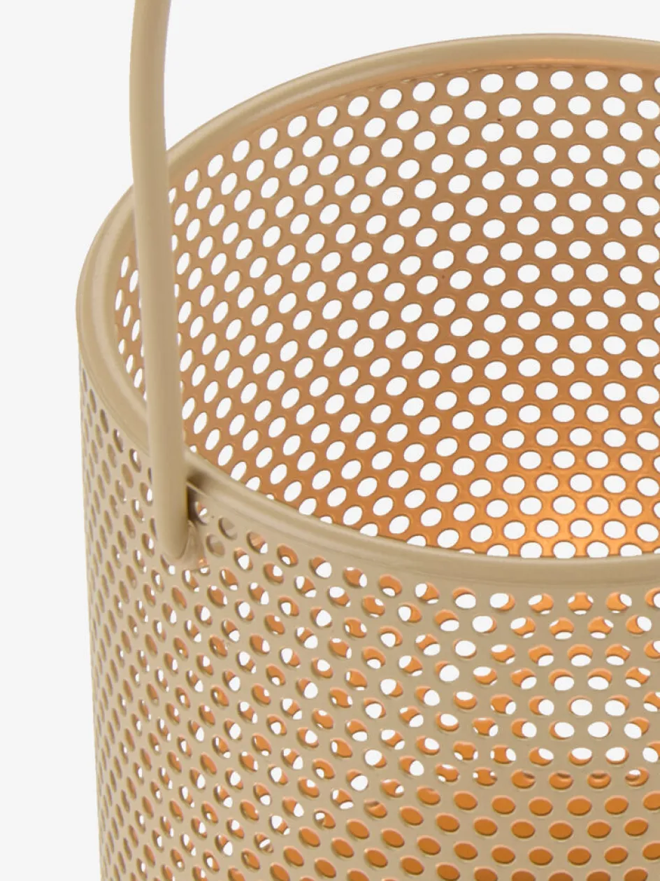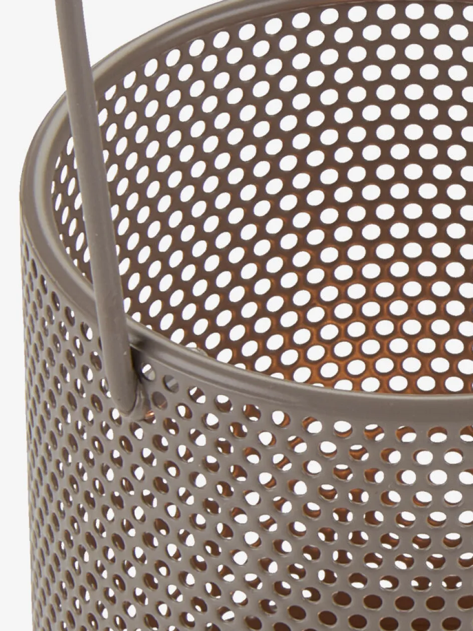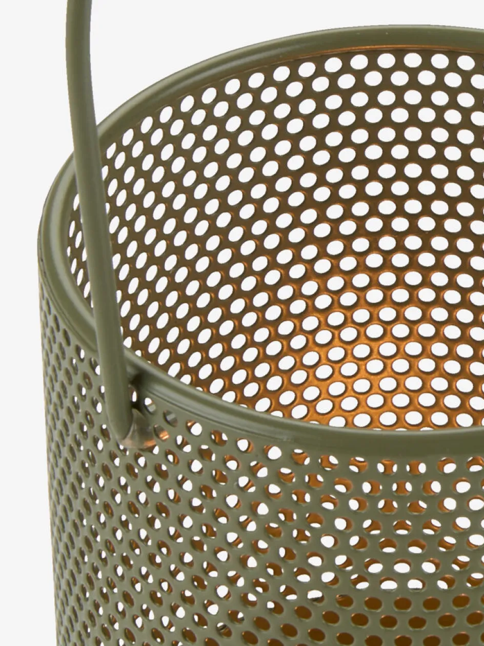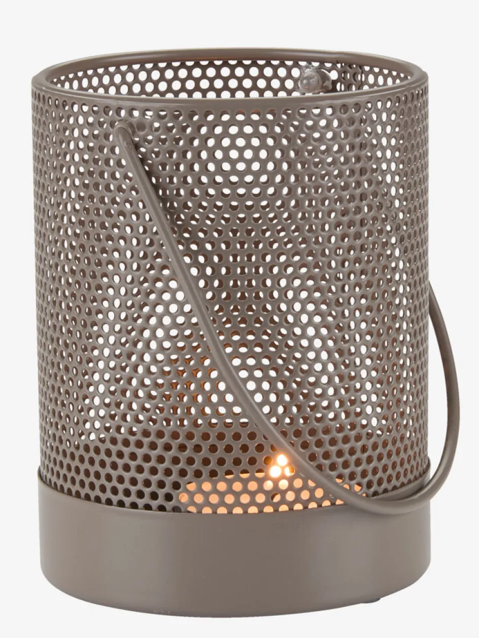 Lanterne en acier peint par poudrage au design moderne et perforé. Une fois allumée, elle projette un magnifique jeu de lumière. Sa taille compacte et sa poignée permettent de la placer facilement dans le jardin ou la maison. Disponible en couleurs assorties et vendue à l’unité. Ø8 x H10 cm