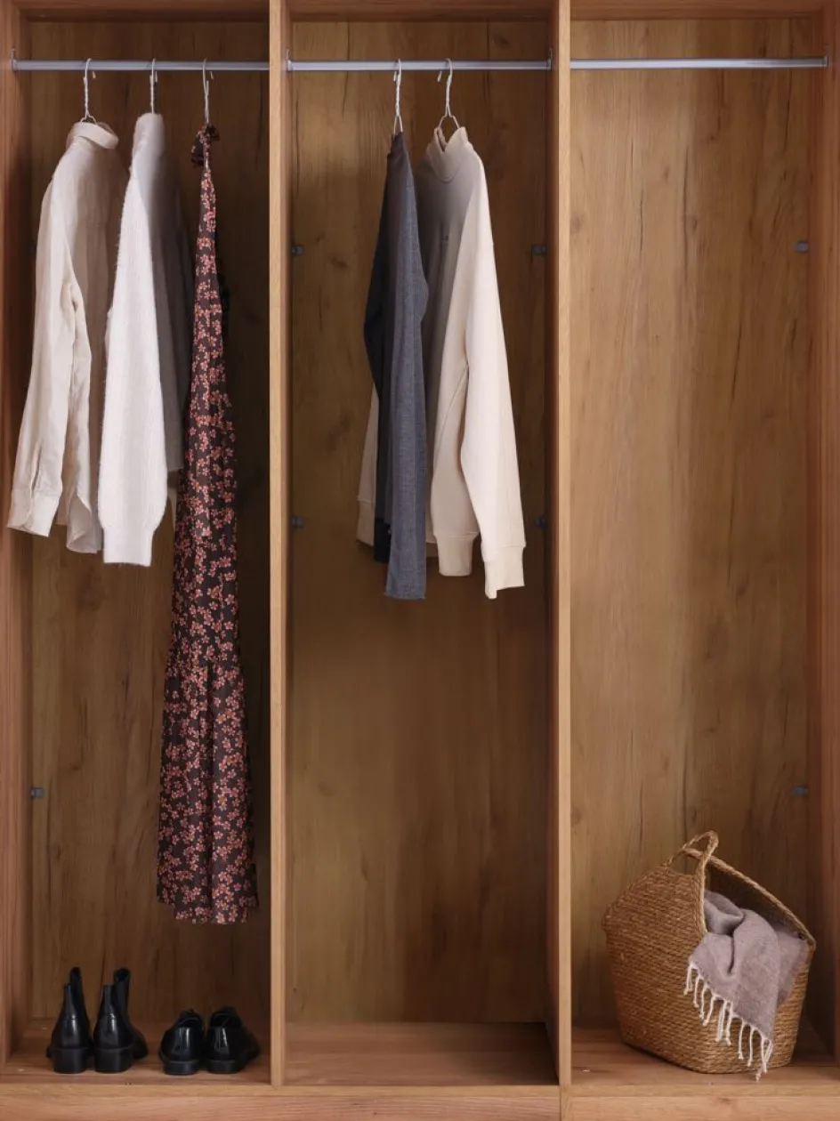 Placage décoratif. Intérieur de garde-robe : 3 tringles à vêtements. l150 x H200 x P60 cm