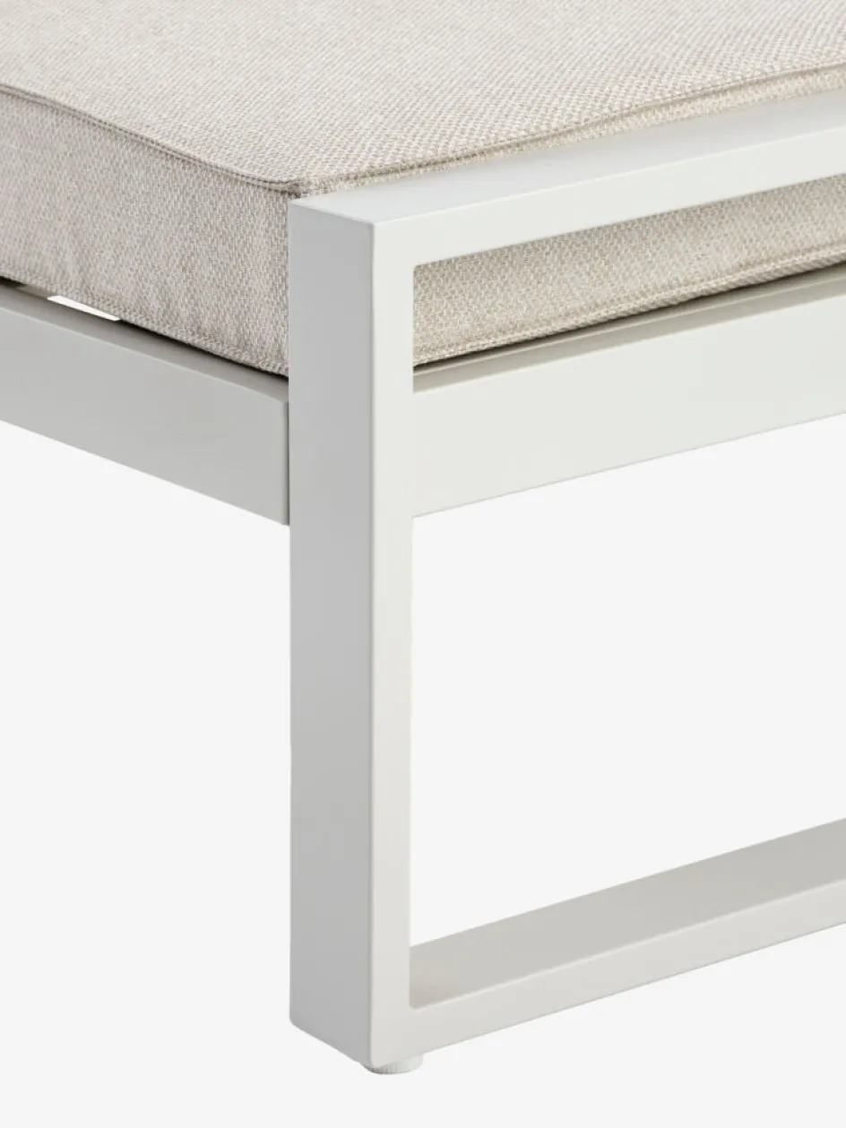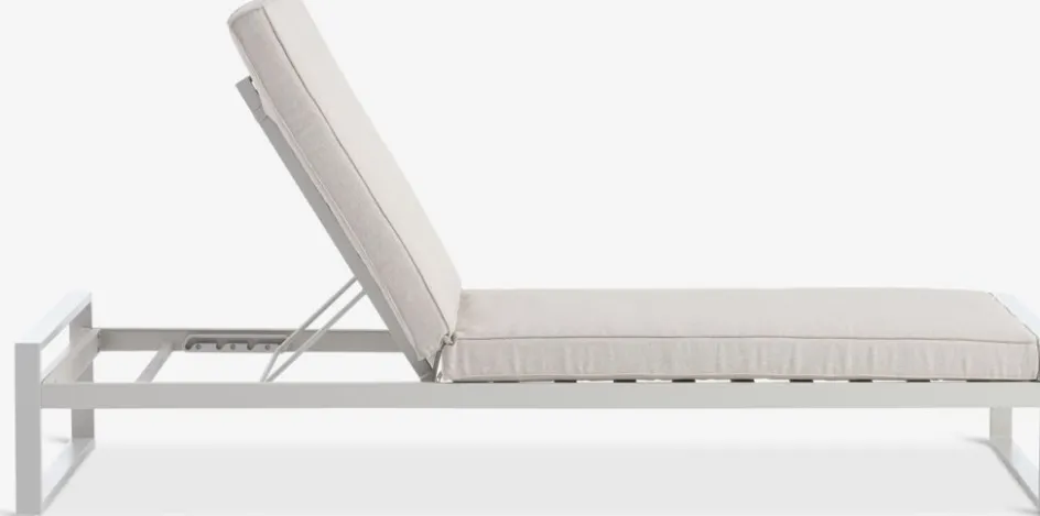 Bain de soleil en aluminium. Incl. coussin haut de gamme avec housse à structure tissée et à séchage rapide. La housse est dotée d’un revêtement étanche à l’intérieur, ce qui empêche l’eau de pénétrer dans le coussin. l75 x L210 x H107 cm