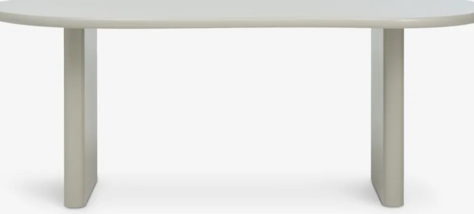 Table de salle à manger ovale en forme organique. Avec plateau beige et pieds assortis en MDF. La table est laquée pour une plus grande durabilité. l98 x L198 x H75 cm